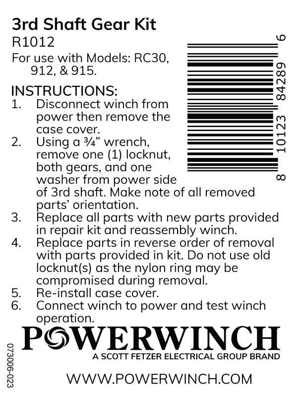 This selection comes with a 24T gear, a pinion gear, a washer, and a lock nut. The 3rd Shaft Gear Kit is used in the RC30, 912, and 915 trailer winches. The kit can be found in the Trailer Winch manuals here.