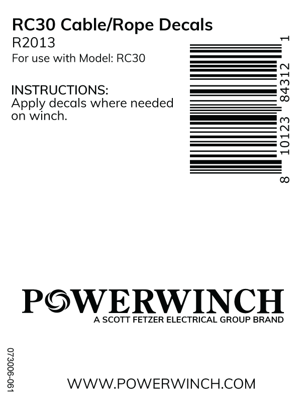 This selection comes with the RC30 decal sheet for the cover kit. The Cable/Rope Decals is used only in the RC23 cable and RC30 rope option of the trailer winches.